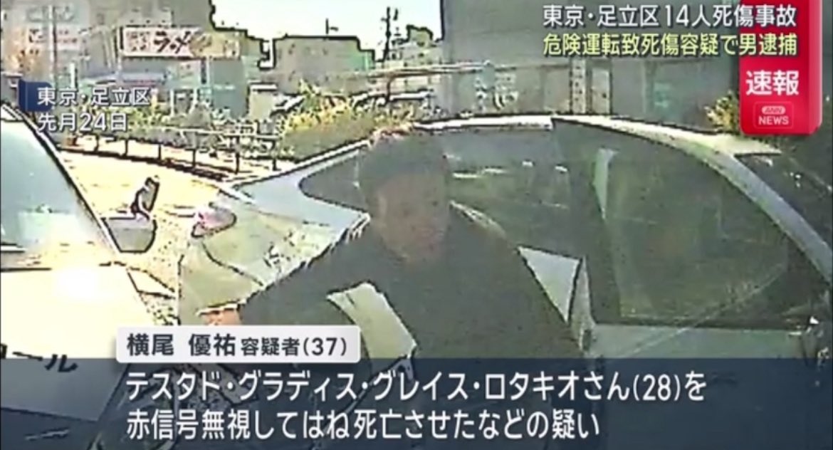 東京・足立区2人死亡、14人死傷ひき逃げ事件ひき逃げ事件、犯人の実名公表。 足立区の職業不詳・横尾優祐容疑者(37)が危険運転致死とひき逃げの疑いで再逮捕された。