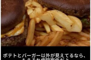 ポテトとバーガーを映した写真らしいんですが目を細めてみると・・・ すみません、、、見えてきましたww